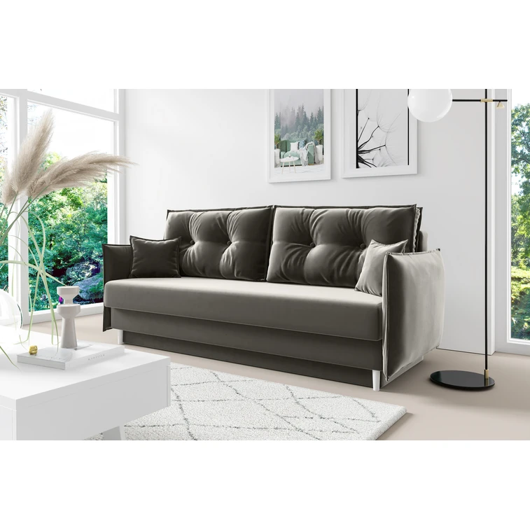 Pevná konštrukcia z dreva a OSB dosky. Poťah z kvalitných látok Kronos, Monolith, Riviera a Soro v mnohých moderných farebných odtieňoch. Jednoduché rozkladanie pohovky na lôžkovú úpravu. Moderný dizajn vhodný do všetkých súčasných interiérov.