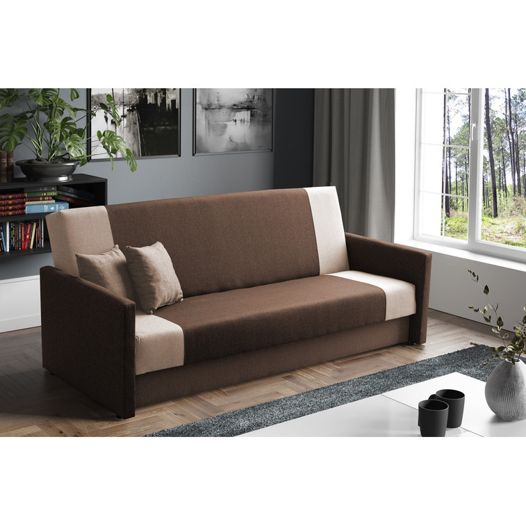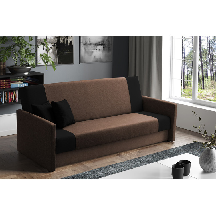 Rozkladacia pohovka 126 AMELIA. Pevná konštrukcia z dreva a OSB dosky. Poťah z kvalitnej látky Riviera v mnoho moderných farebných odtieňoch. Jednoduché rozkladanie pohovky na lôžkovú podobu. Moderný dizajn vhodný do všetkých súčasných interiérov.