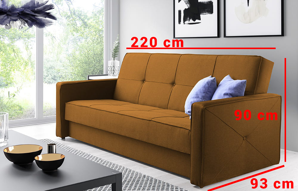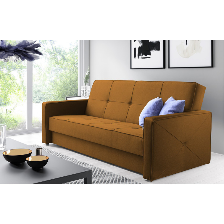 Rozkladacia pohovka 146 HARPER. Pevná konštrukcia z dreva a OSB dosky. Poťah z kvalitnej látky Fresh v mnohých moderných farebných odtieňoch. Jednoduché rozkladanie pohovky na lôžkovú podobu. Moderný dizajn vhodný do všetkých súčasných interiérov.