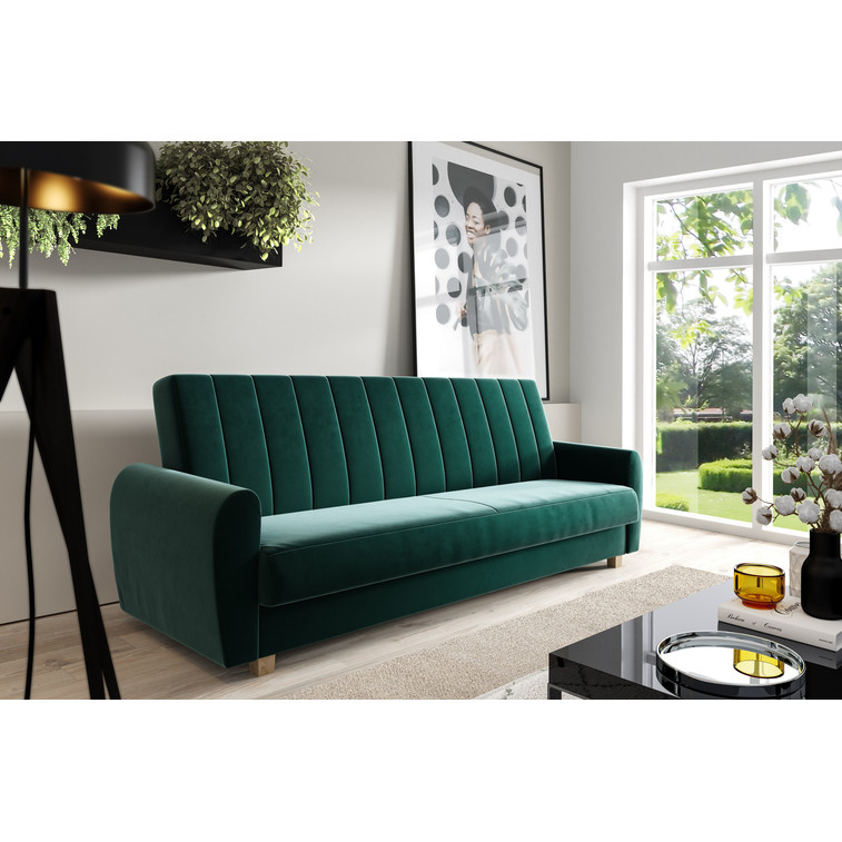 Pevná konštrukcia z dreva a OSB dosky. Poťah z kvalitnej látky Kronos v moderných farebných odtieňoch. Jednoduché rozkladanie pohovky na lôžkovú podobu. Moderný škandinávsky dizajn vhodný do všetkých súčasných interiérov.