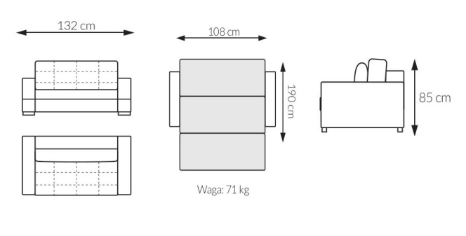 Pevná konštrukcia z dreva a OSB dosky. Prešívaný podsedák. Jednoduché rozkladanie pohovky na lôžkovú podobu.