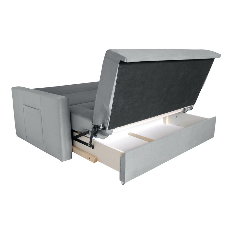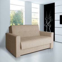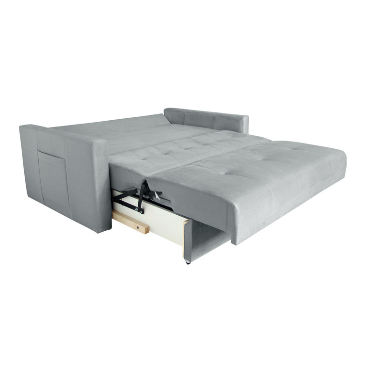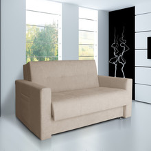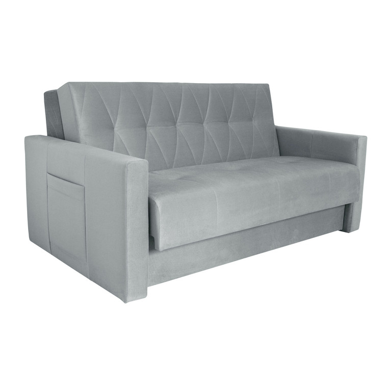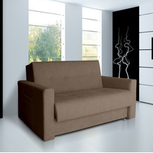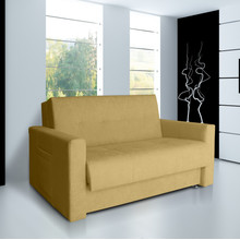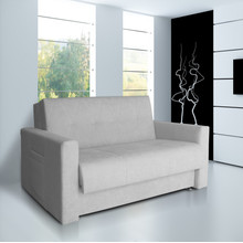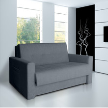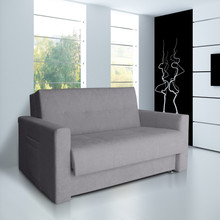 Rozkladacia pohovka BOMO 3. Pevná konštrukcia z dreva a OSB dosky. Prešívaný podsedák. Jednoduché rozkladanie pohovky na lôžkovú podobu.