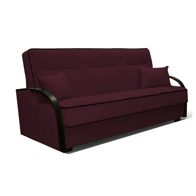 Pevná konštrukcia z dreva a OSB dosky. Boky kresla sú s drevenými prvkami. Dekoratívne vankúše sú súčasťou pohovky.