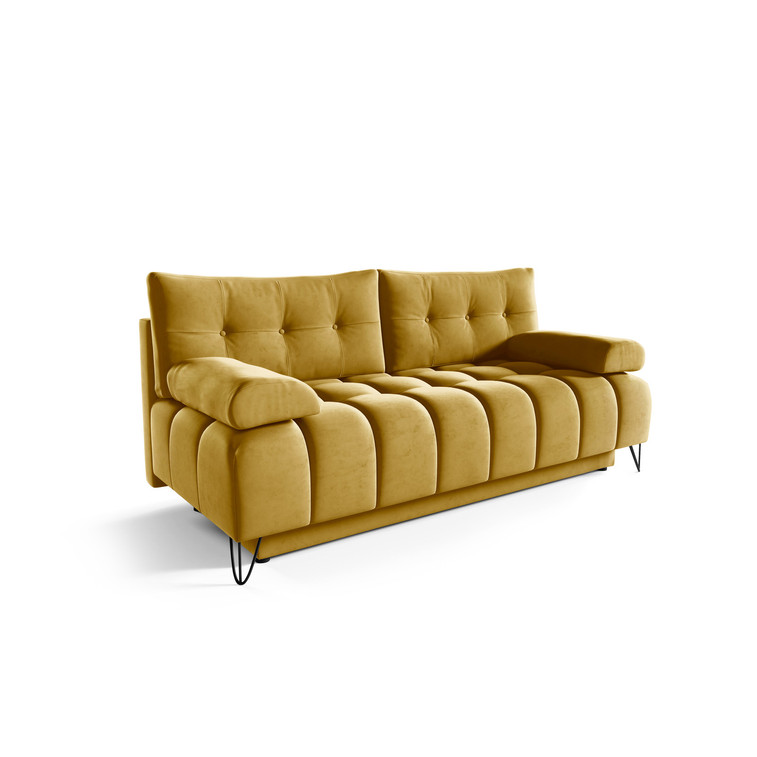 Pevná konštrukcia z dreva a OSB dosky. Poťah z kvalitnej látky Monolith v moderných farebných odtieňoch. Jednoduché rozkladanie pohovky na lôžkovú podobu. Moderný škandinávsky dizajn vhodný do všetkých súčasných interiérov.