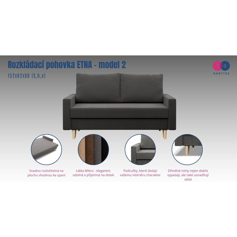 Pevná konštrukcia z dreva a OSB dosky. Jednoduché rozkladanie pohovky na lôžkovú podobu. Moderný škandinávsky dizajn vhodný do všetkých súčasných interiérov.