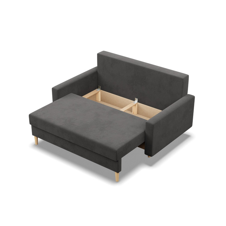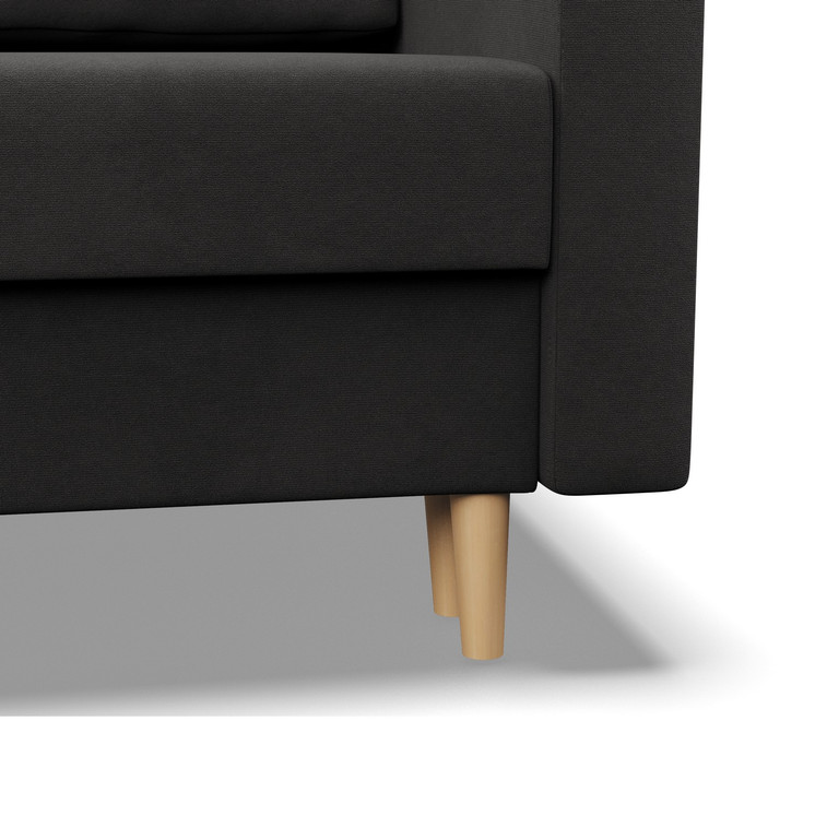 Pevná konštrukcia z dreva a OSB dosky. Jednoduché rozkladanie pohovky na lôžkovú podobu. Moderný škandinávsky dizajn vhodný do všetkých súčasných interiérov.
