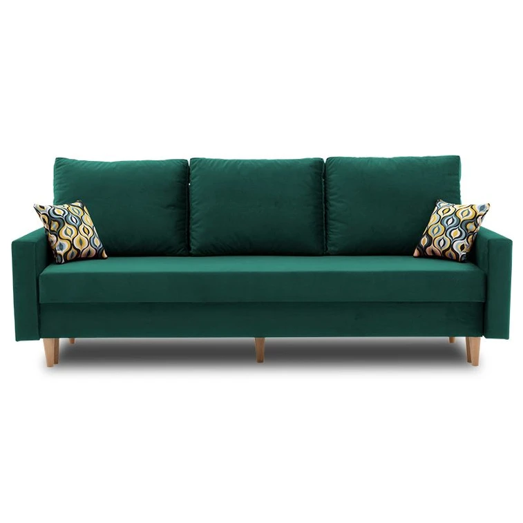 Pevná konštrukcia z dreva a OSB dosky. Poťah z kvalitnej látky Kronos v mnohých moderných farebných odtieňoch. Jednoduché rozkladanie pohovky na lôžkovú podobu. Moderný dizajn vhodný do všetkých súčasných interiérov.