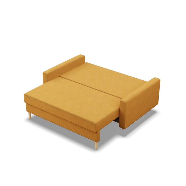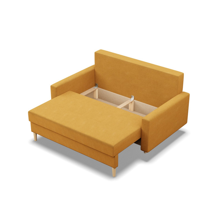 Pevná konštrukcia z dreva a OSB dosky. Jednoduché rozkladanie pohovky na lôžkovú podobu. Moderný škandinávsky dizajn vhodný do všetkých súčasných interiérov.