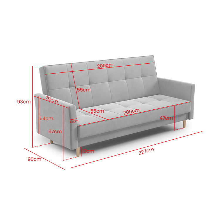 Pevná konštrukcia z dreva a OSB dosky.Poťah z kvalitných látok v mnohých moderných farebných odtieňoch .Jednoduché rozkladanie pohovky na lôžkovú podobu. Moderný design vhodný do všetkých súčasných interiérov.