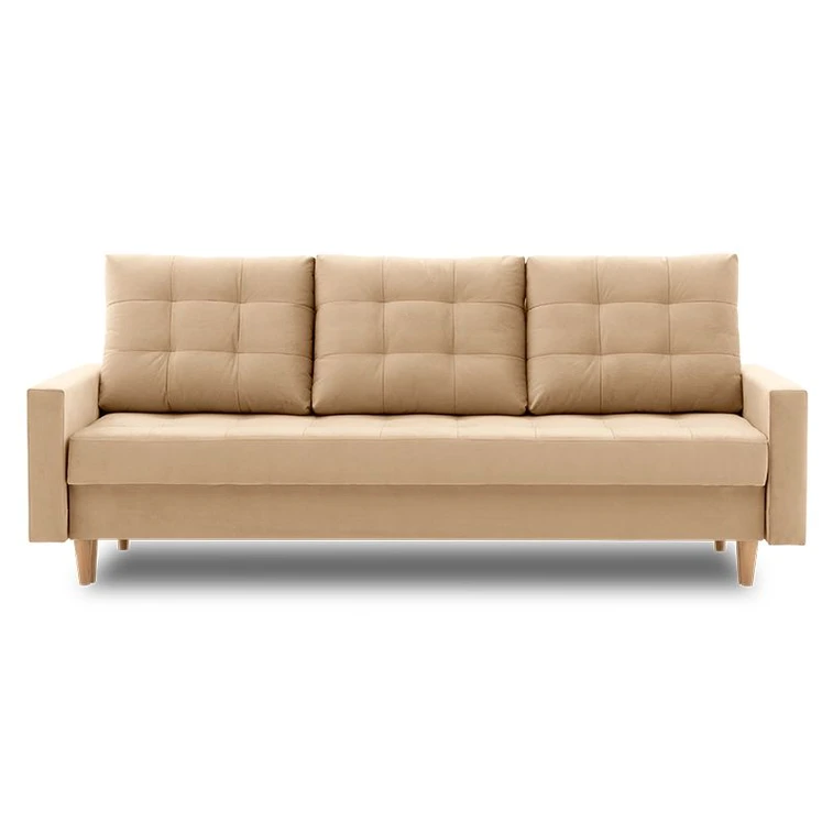 Rozkladacia pohovka LENA. Pevná konštrukcia z dreva a OSB dosky. Poťah z kvalitnej látky KRONOS v mnohých moderných farebných odtieňoch. Jednoduché rozkladanie pohovky na lôžkovú podobu. Moderný dizajn vhodný do všetkých súčasných interiérov.