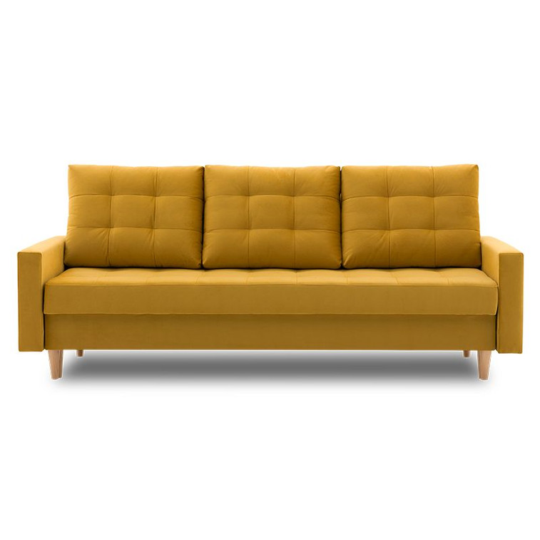 Rozkladacia pohovka LENA. Pevná konštrukcia z dreva a OSB dosky. Poťah z kvalitnej látky KRONOS v mnohých moderných farebných odtieňoch. Jednoduché rozkladanie pohovky na lôžkovú podobu. Moderný dizajn vhodný do všetkých súčasných interiérov.