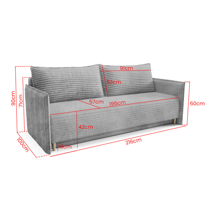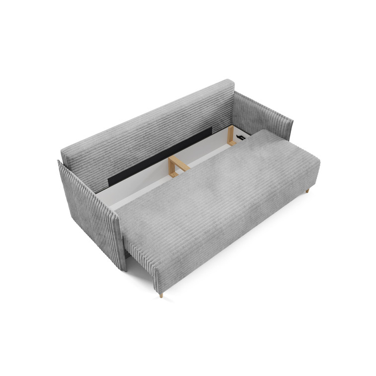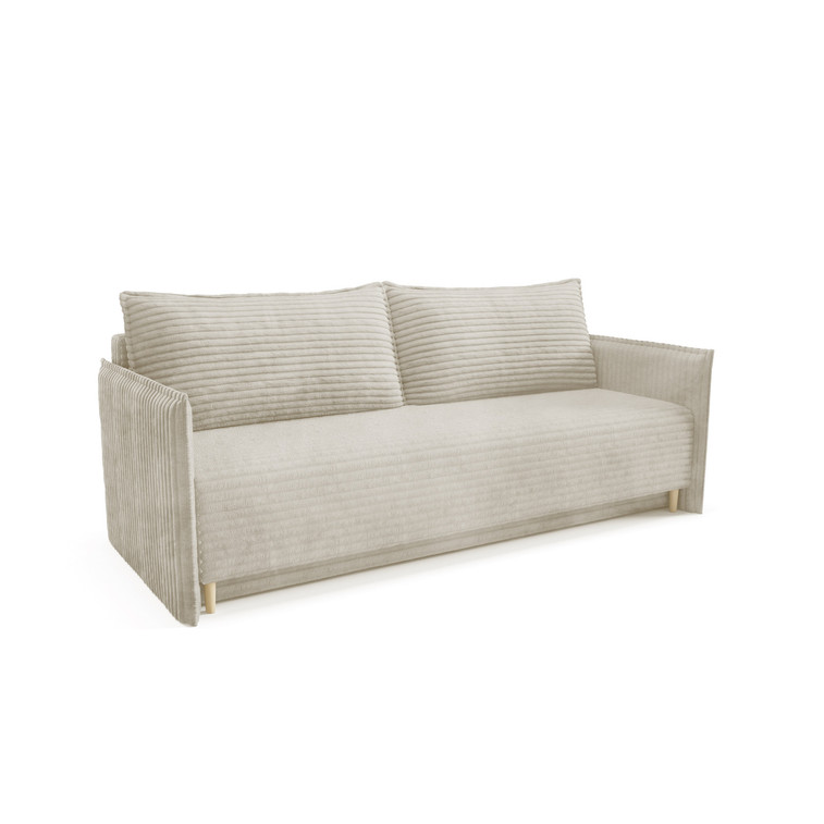 Pevná konštrukcia z dreva a OSB dosky.Poťah z kvalitnej látky Haiti v mnohých moderných farebných odtieňoch. Jednoduché rozkladanie pohovky na lôžkovú podobu. Moderný design vhodný do všetkých súčasných interiérov.