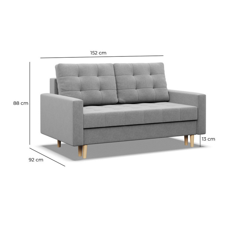 Pevná konštrukcia z dreva a OSB dosky. Jednoduché rozkladanie pohovky na lôžkovú podobu. Moderný škandinávsky dizajn vhodný do všetkých súčasných interiérov.