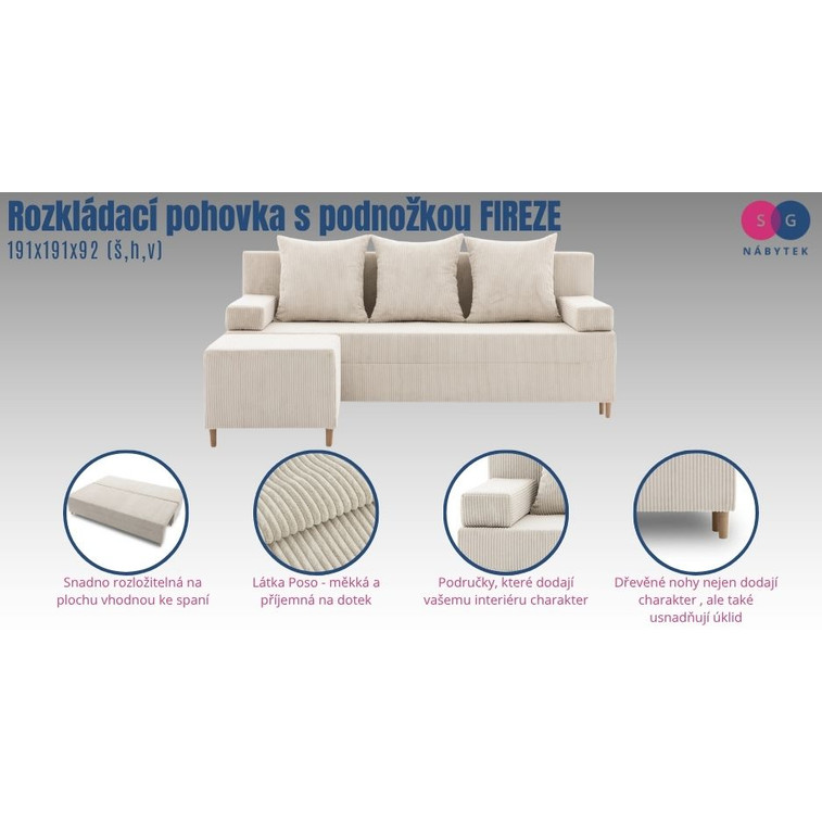 Moderná rozkladacia pohovka s podnožkou Fireze.