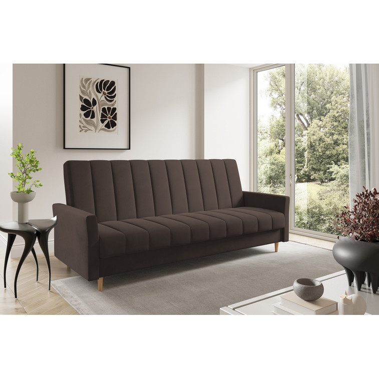 Pevná konštrukcia z dreva a OSB dosky.Poťah z kvalitných látok v mnohých moderných farebných odtieňoch. Jednoduché rozkladanie pohovky na lôžkovú podobu. Moderný design vhodný do všetkých súčasných interiérov.