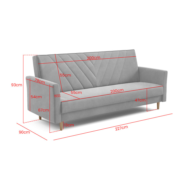 Pevná konštrukcia z dreva a OSB dosky.Poťah z kvalitných látok v mnohých moderných farebných odtieňoch. Jednoduché rozkladanie pohovky na lôžkovú podobu. Moderný design vhodný do všetkých súčasných interiérov.