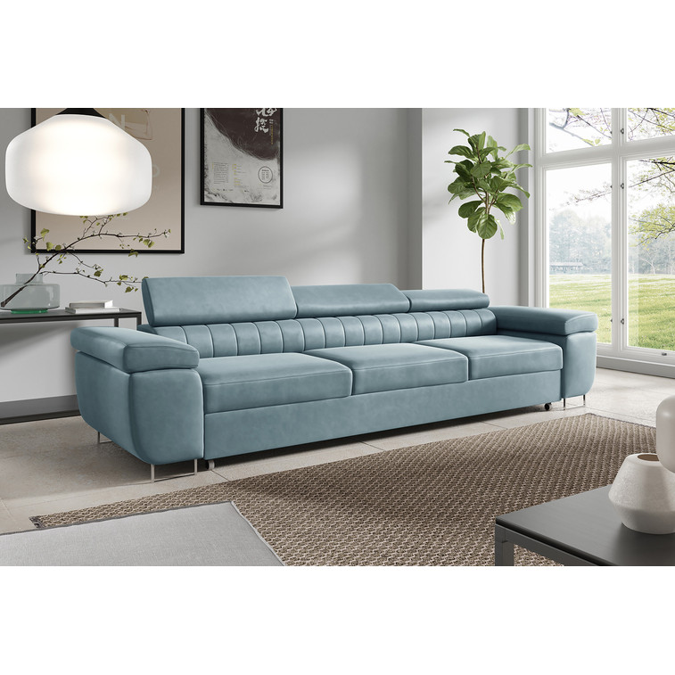 Pevná konštrukcia z dreva a OSB dosky. Poťah z kvalitnej tkaniny v mnohých moderných farebných odtieňoch. Jednoduché rozkladanie pohovky na lôžkovú podobu. Moderný dizajn vhodný do všetkých súčasných interiérov.