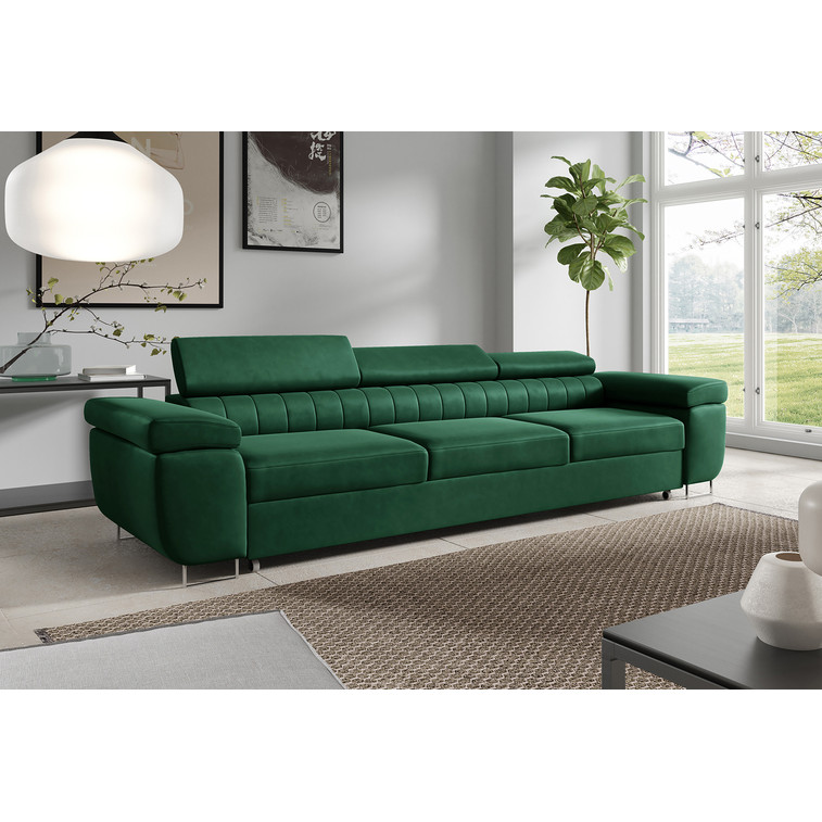 Pevná konštrukcia z dreva a OSB dosky. Poťah z kvalitnej tkaniny v mnohých moderných farebných odtieňoch. Jednoduché rozkladanie pohovky na lôžkovú podobu. Moderný dizajn vhodný do všetkých súčasných interiérov.