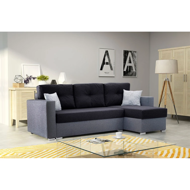 Rozkladacia rohová sedacia súprava 102 AIDEN Pravá Tmavosivá+čierna