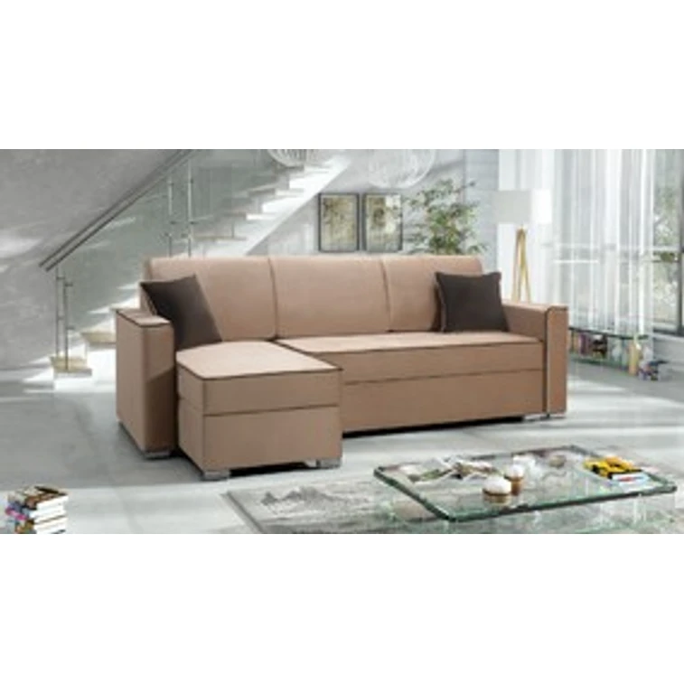 Rozkladacia rohová sedacia súprava 147 ELIJAH Ľavá Svetlohnedá/hnedá