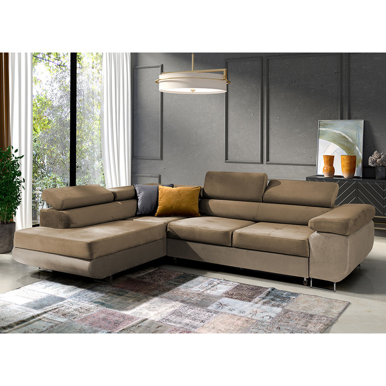 Rozkladacia sedacia súprava Etham. Pevná konštrukcia z dreva a OSB dosky. Poťah z kvalitnej látky Kronos v moderných farebných odtieňoch. Jednoduché rozkladanie pohovky na lôžkovú podobu. Moderný dizajn vhodný do všetkých súčasných interiérov.