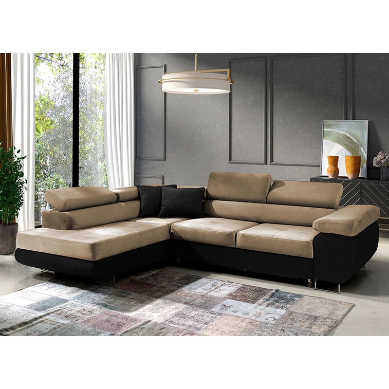 Rozkladacia rohová sedacia súprava 150 ETHAM Ľavá Béžová/čierna