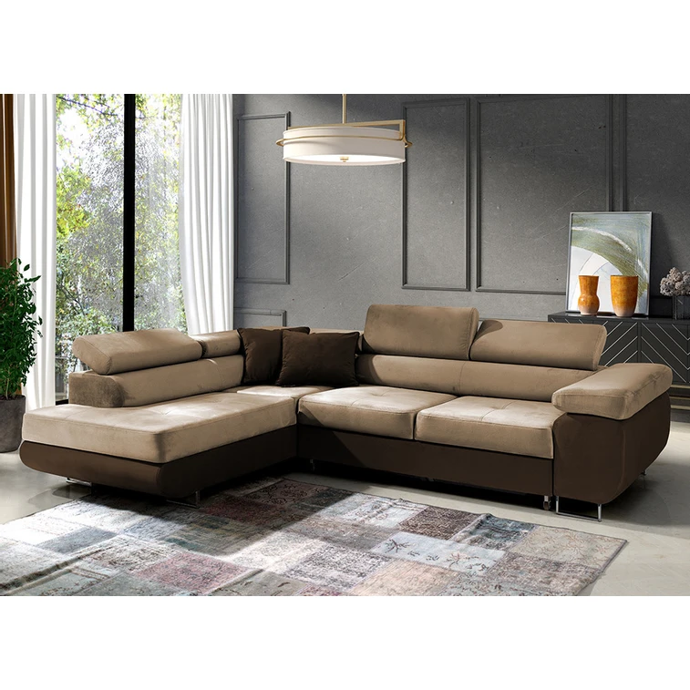 Rozkladacia rohová sedacia súprava 150 ETHAM Ľavá Hnedá/béžová