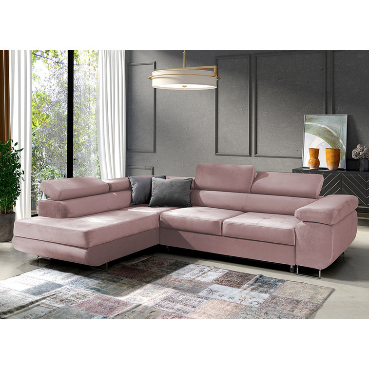 Rozkladacia rohová sedacia súprava 150 ETHAM Ľavá Ružová