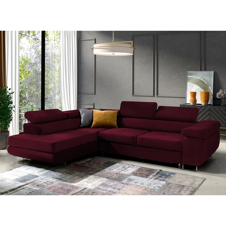 Rozkladacia rohová sedacia súprava 150 ETHAM Ľavá Tmavočervená
