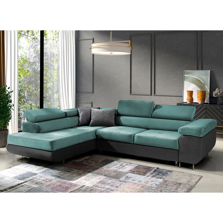 Rozkladacia rohová sedacia súprava 150 ETHAM Ľavá Tmavotyrkysová/sivá