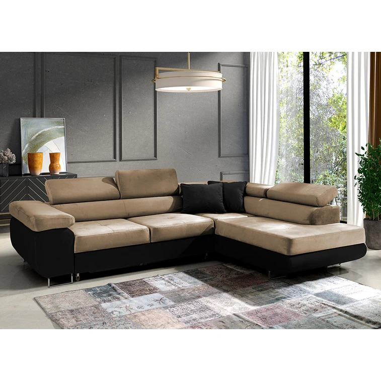 Rozkladacia rohová sedacia súprava 150 ETHAM Pravá Béžová/čierna