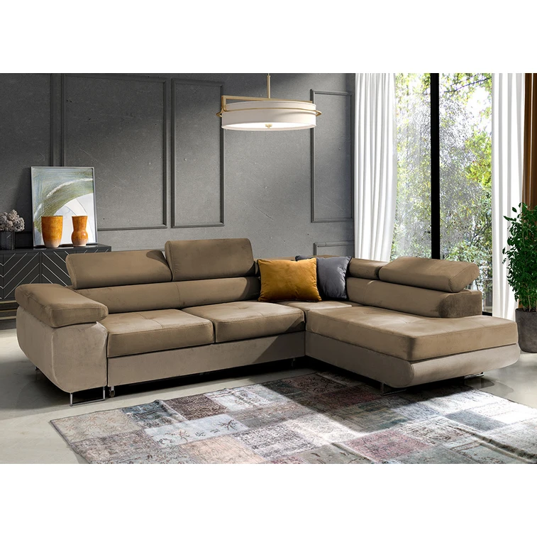 Rozkladacia rohová sedacia súprava 150 ETHAM Pravá Béžová - hnedá