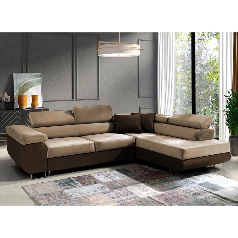 Rozkladacia rohová sedacia súprava 150 ETHAM Pravá Hnedá/béžová
