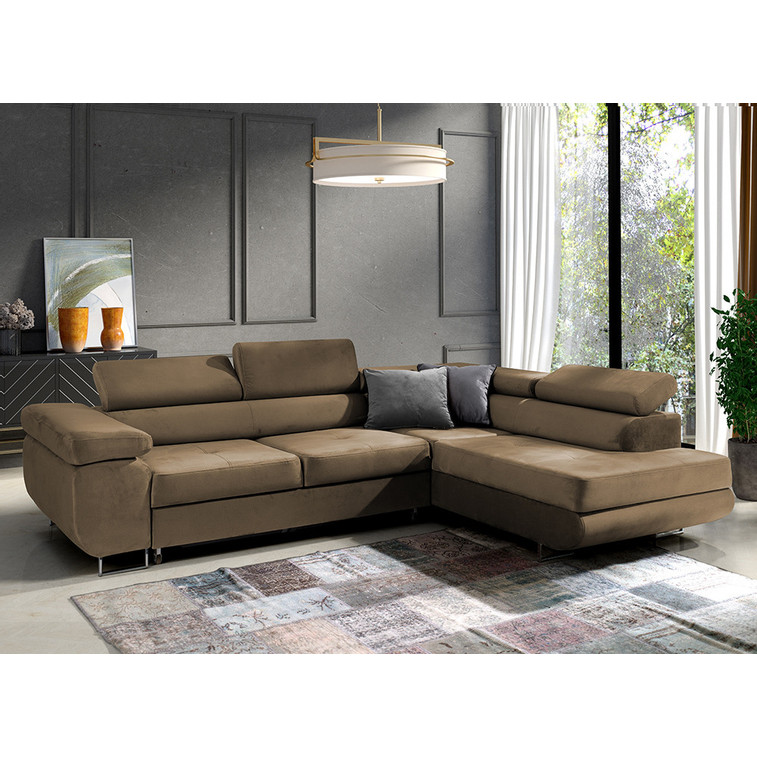 Rozkladacia rohová sedacia súprava 150 ETHAM Pravá Hnedá