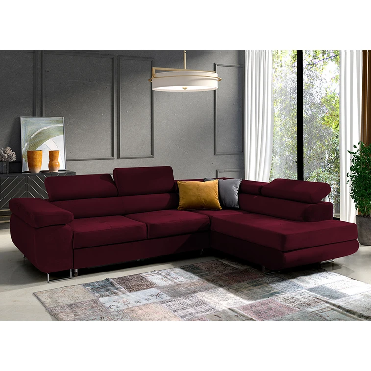 Rozkladacia rohová sedacia súprava 150 ETHAM Pravá Tmavočervená