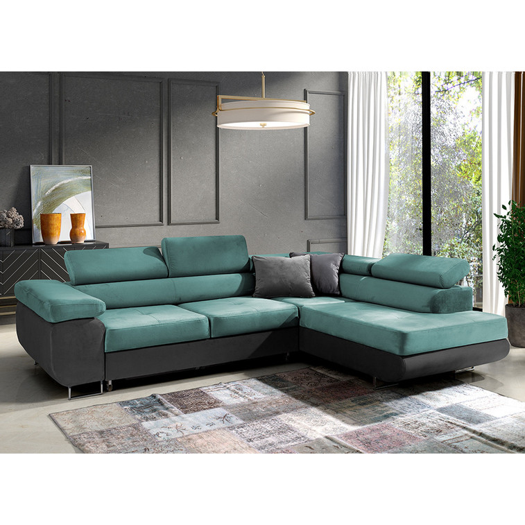 Rozkladacia rohová sedacia súprava 150 ETHAM Pravá Tmavotyrkysová/sivá