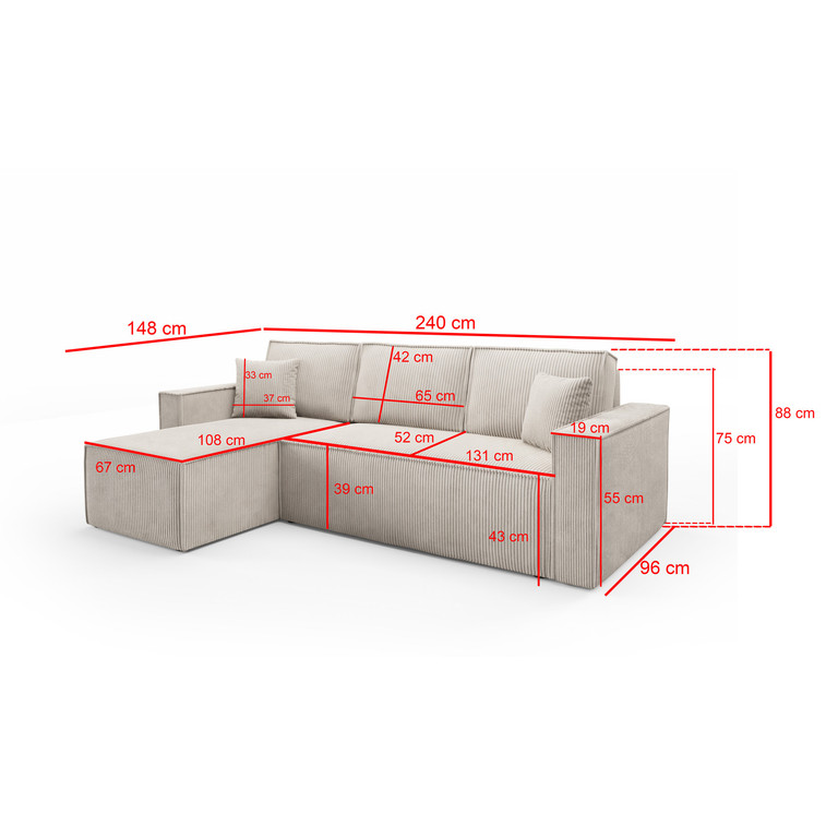 Sedacia súprava je univerzálna, sami si zvolíte pri montáži, či chcete mať roh vľavo alebo vpravo.