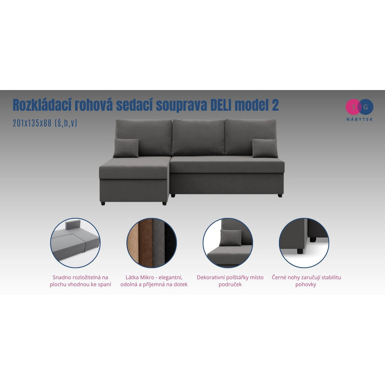 Rozkladacia rohová sedacia súprava Deli model 2.