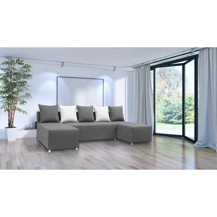 Sedacia súprava je vyrobená z kvalitných materiálov, poskytuje pohodlné posedenie pri televízii a zároveň sa vďaka zaujímavému modernému dizajnu stane dominantou každej obývacej izby. Konštrukcia pohovky je vyrobená z dreva a drevotrieskovej dosky a výplň tvorí polyuretánová pena. Pohovku možno rozložiť, spacia plocha: 122x252 cm.