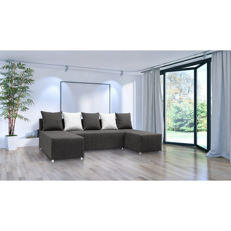 Sedacia súprava je vyrobená z kvalitných materiálov, poskytuje pohodlné posedenie pri televízii a zároveň sa vďaka zaujímavému modernému dizajnu stane dominantou každej obývacej izby. Konštrukcia pohovky je vyrobená z dreva a drevotrieskovej dosky a výplň tvorí polyuretánová pena. Pohovku možno rozložiť, spacia plocha: 122x252 cm.