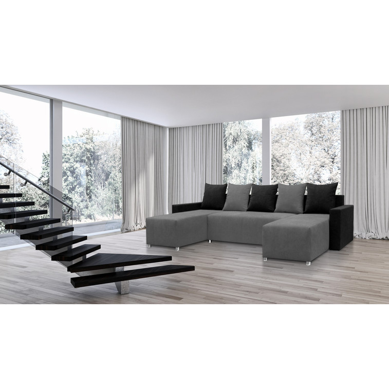 Rozkladacia rohová sedacia súprava FILIP 4 Sivá/čierna