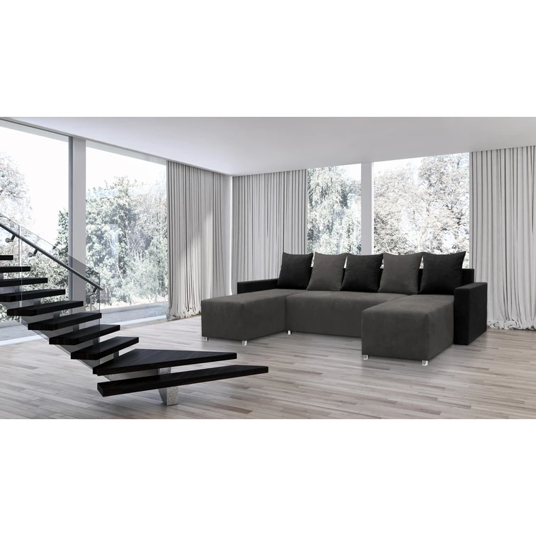 Rozkladacia rohová sedacia súprava FILIP 4 Tmavo sivá/čierna