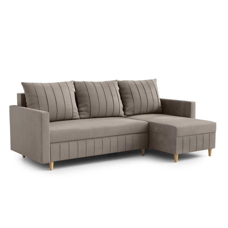 Rozkladacia rohová sedacia súprava FOX. Pevná konštrukcia z dreva a drevotriesky. Jednoduché rozkladanie pohovky na lôžkovú podobu. Moderný dizajn vhodný do všetkých súčasných interiérov.