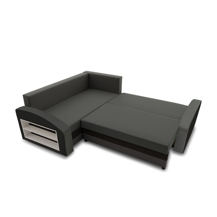 Rozkladacia rohová sedacia súprava GRANDE s poličkou model 2 Ľavá Sivá/čierna