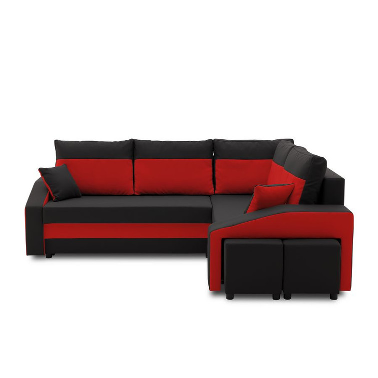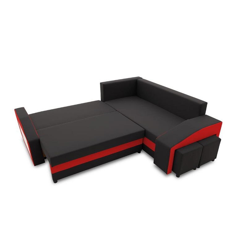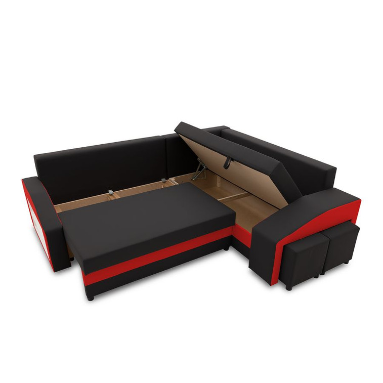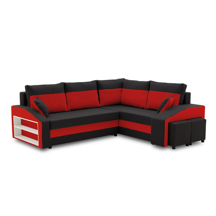 Rozkladacia rohová sedacia súprava GRANDE s taburetkami a poličkou model 2.