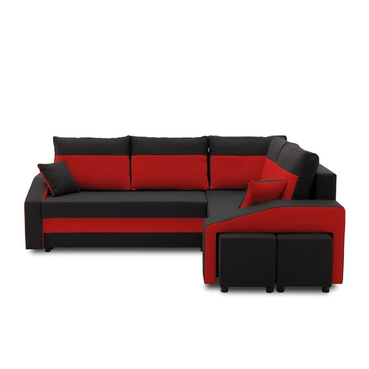 Rozkladacia rohová sedacia súprava GRANDE s taburetkami a poličkou model 2