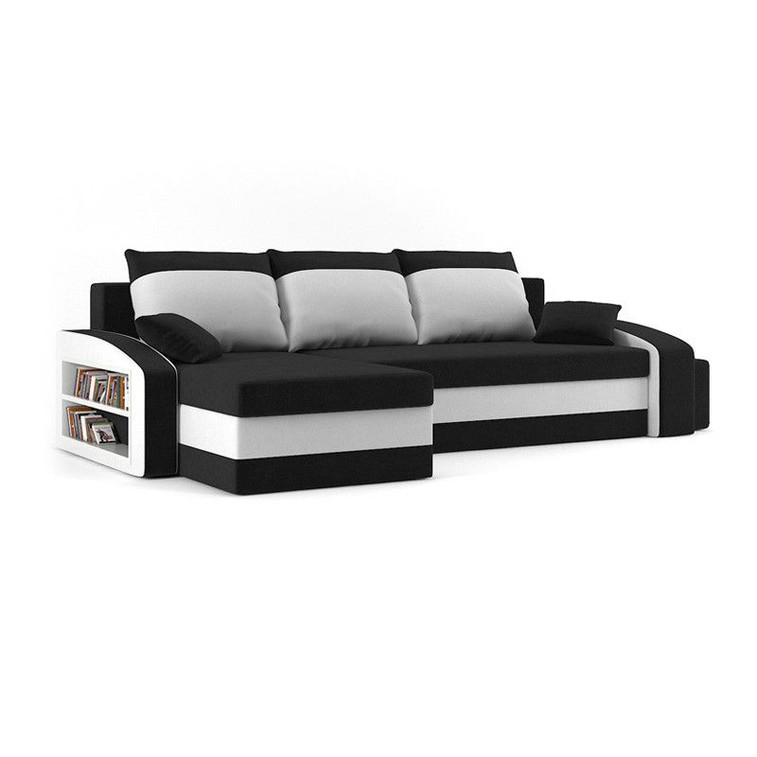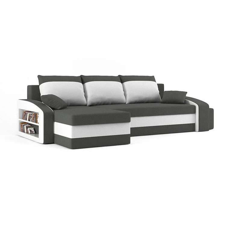 Pevná konštrukcia z dreva a OSB dosky. Poťah z kvalitnej látky Micro v mnohých moderných farebných odtieňoch. Jednoduché rozkladanie pohovky na lôžkovú podobu. Praktická polička je umiestnená v bočniciach sedačky. Moderný dizajn vhodný do všetkých súčasných interiérov.