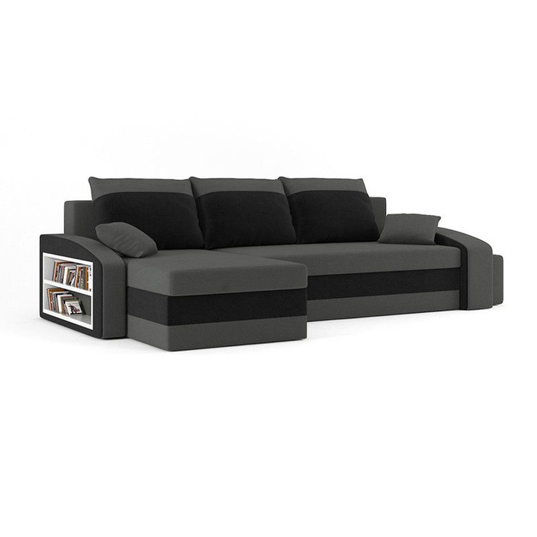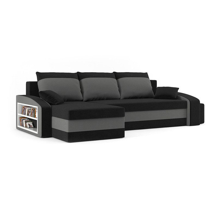 Rozkladacia rohová sedacia súprava HEWLET s taburetkami a poličkou model 2 Čierna/šedá Pravá