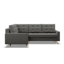 Pevná konštrukcia z dreva a OSB dosky. Poťah z kvalitnej látky Lux v moderných farebných odtieňoch. Možnosť zvolenia ľavého alebo pravého variantu. Jednoduché rozkladanie pohovky na lôžkovú podobu. Moderný škandinávsky dizajn vhodný do všetkých súčasných interiérov.