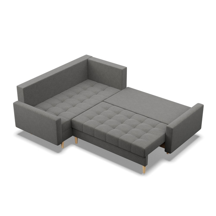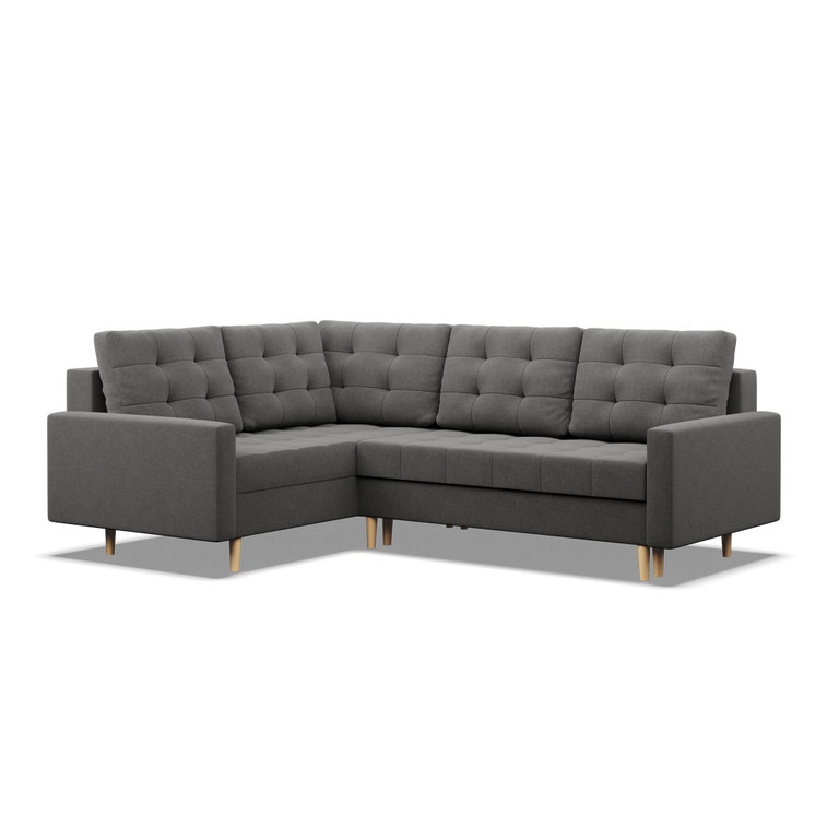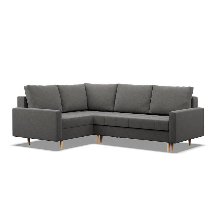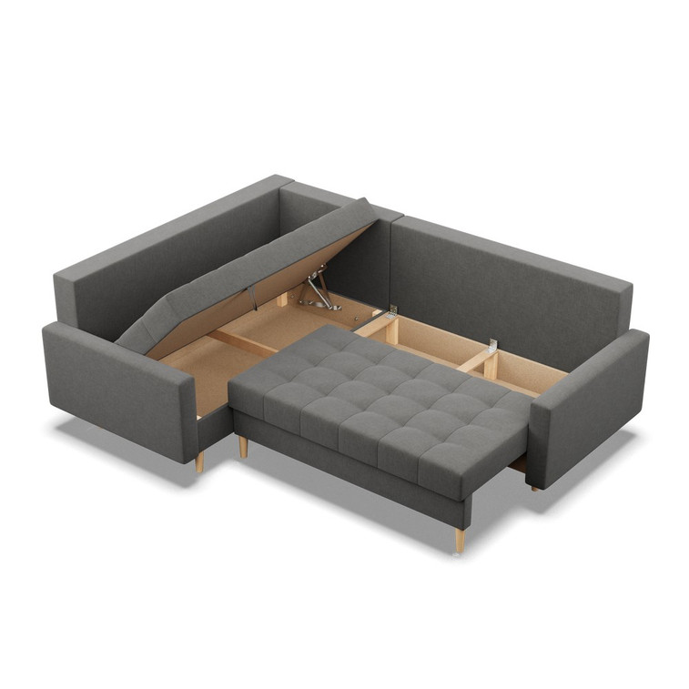 Pevná konštrukcia z dreva a OSB dosky. Poťah z kvalitnej látky Lux v moderných farebných odtieňoch. Možnosť zvolenia ľavého alebo pravého variantu. Jednoduché rozkladanie pohovky na lôžkovú podobu. Moderný škandinávsky dizajn vhodný do všetkých súčasných interiérov.